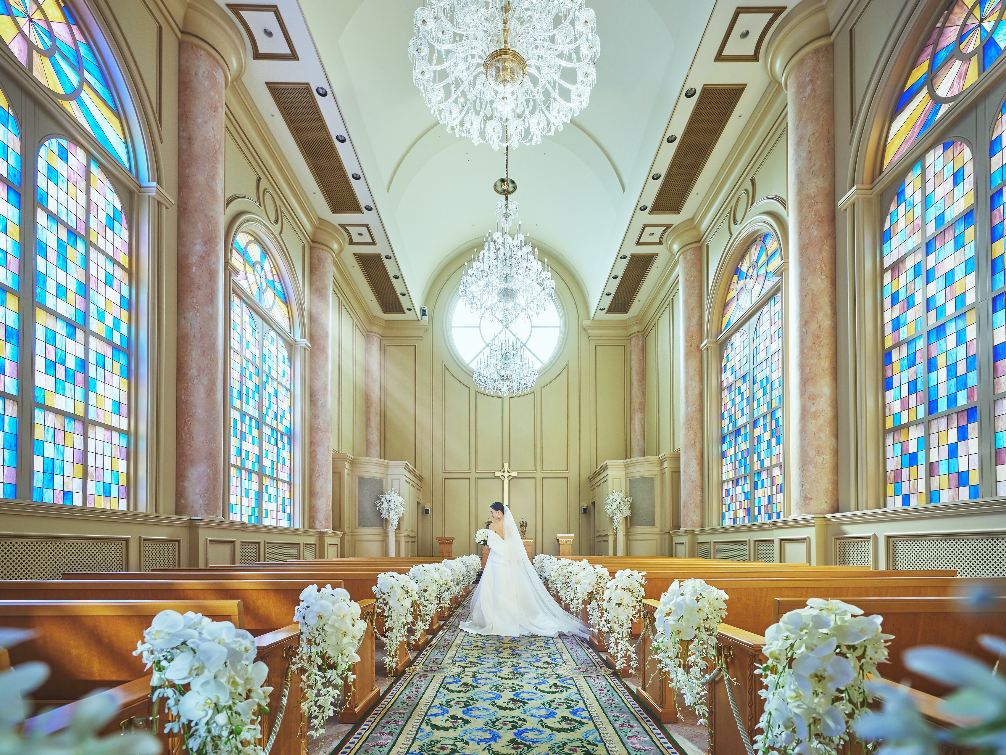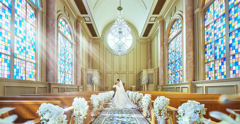 関西最大級の大聖堂、ザ・クリスタルチャペル。 厳粛なだけでなく、女性らしいデザインの内装であたたかな挙式がかないます。 TheCrystal Chapel is a popular venue for solemn yet joyful ceremonies. リーガロイヤルホテルリーガロイヤルホテル大阪。