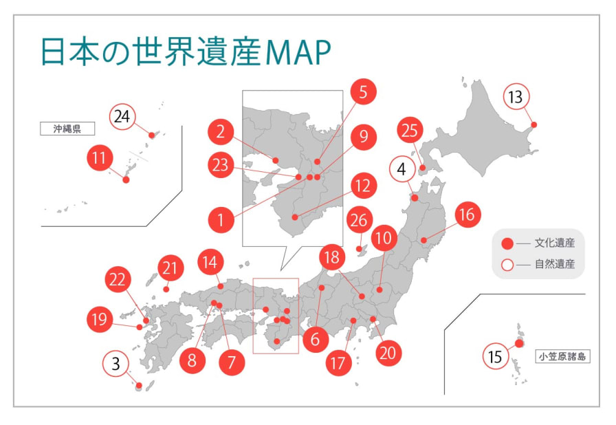 2025年 日本の世界遺産全26件と候補一覧 都道府県別 アクセス行き方 地図・写真・動画・評価 - 世界一周旅行記ブログ。