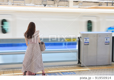 新幹線を待つ女性 一人旅 後ろ姿の写真素材91950914- PIXTA。