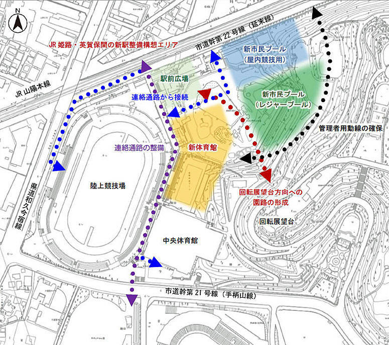 姫路市 手柄山中央公園内に位置するスポーツ施設 「手柄山スポーツ施設整備基本計画」の予定地: 陽は西から昇る! 関西のプロジェクト探訪。