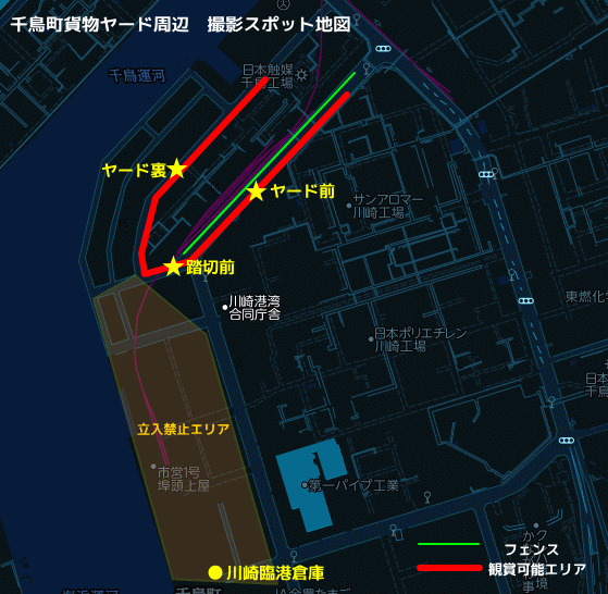 川崎市 千鳥町貨物ヤード周辺の工場夜景スポット工場夜景スポット情報。