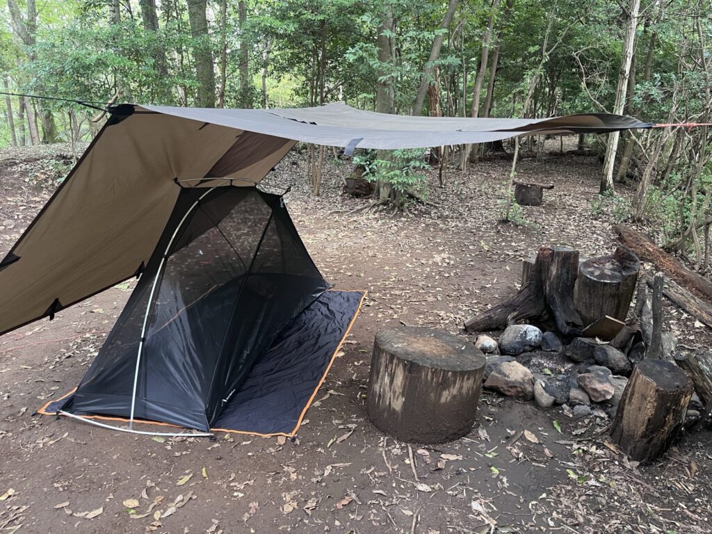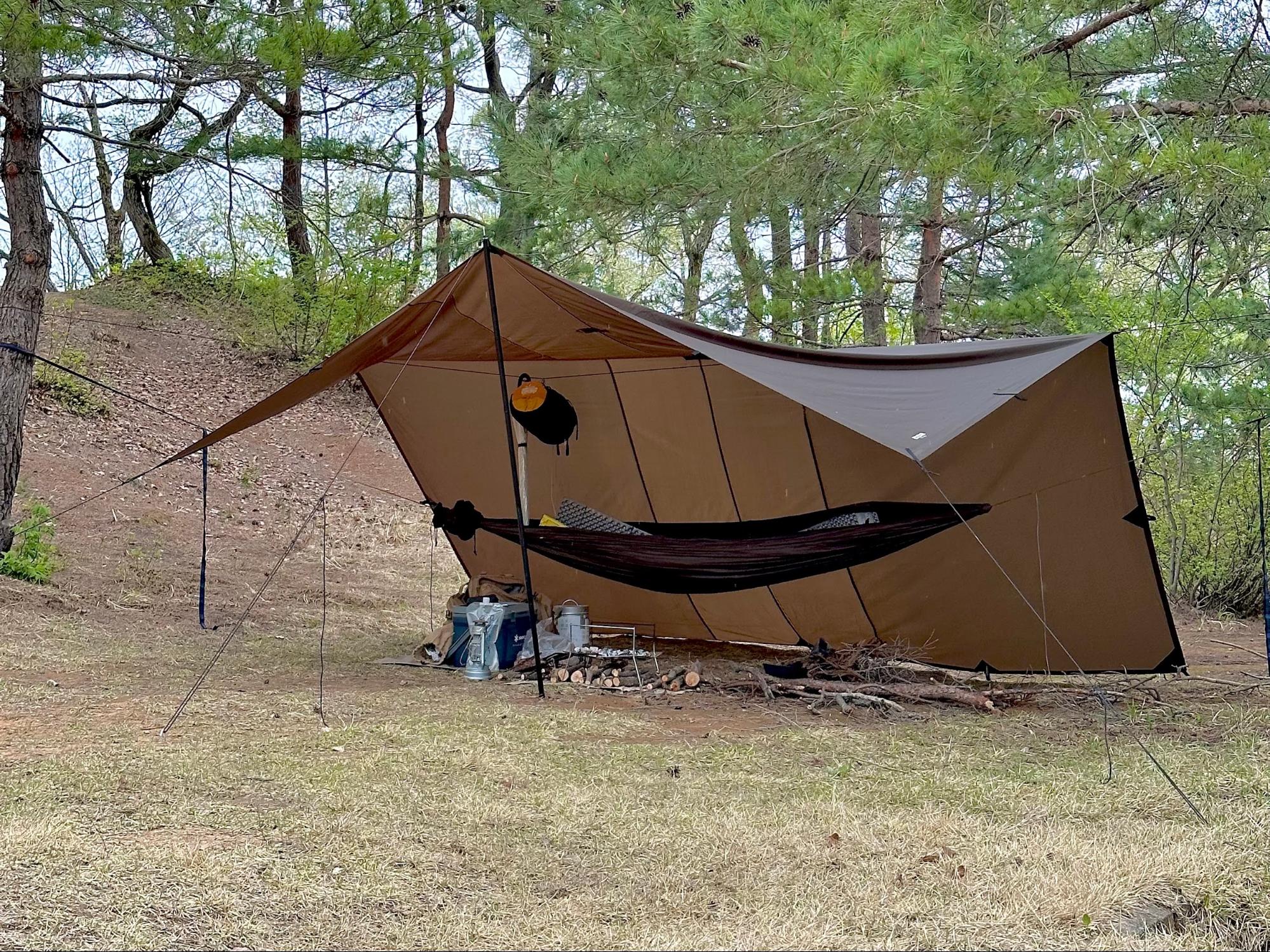 DDタープをクローズにしてタープ泊する方法ブッシュクラフトビギナ。