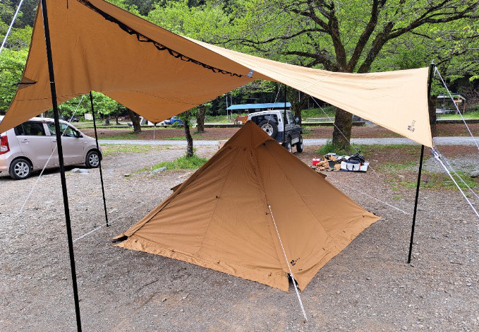 ゴーグランピング・スクエアTCタープを楽しむ!①ダイヤモンド張り~よかろーキャンプ。