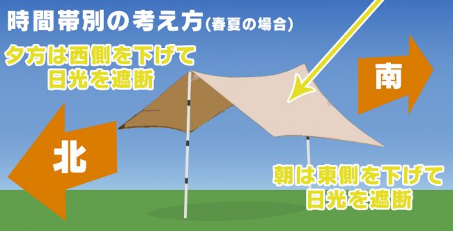 太陽の向き・動きを考慮したテントやタープの張り方って?キャンプにおける日差し対策を徹底解説キャンプ用品の格安レンタル。