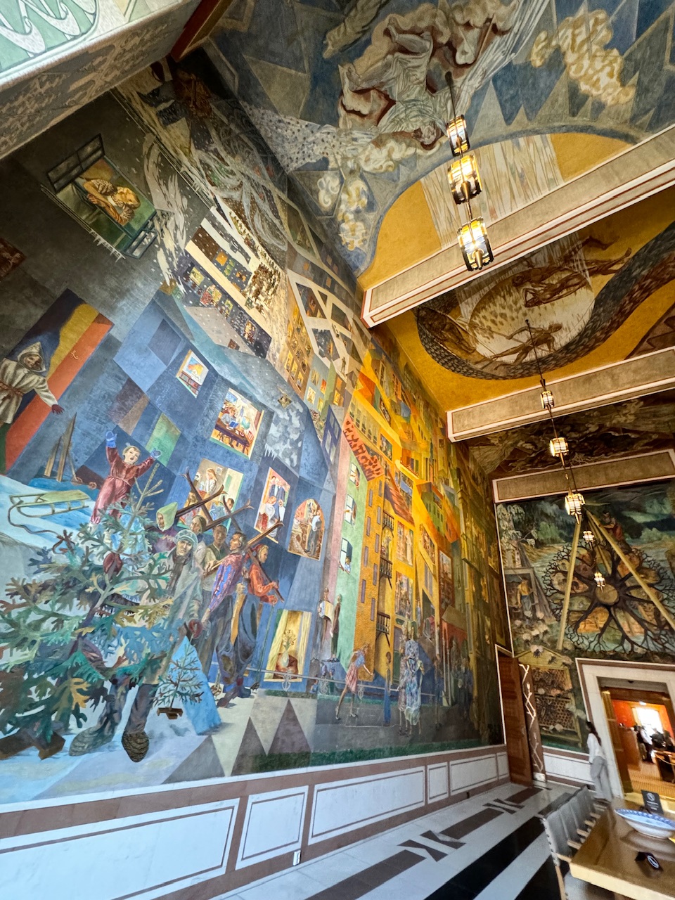 ノルウェー紀行;第10日目;オスロ観光 1 ;シティホールの壁画 - 中高年の山旅三昧 その2。
