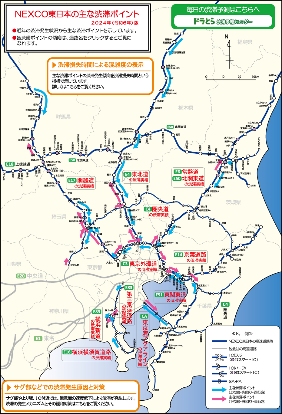 高速道路の渋滞ポイントマップドラぷら NEXCO東日本。