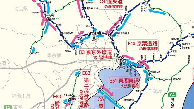 E14 京葉道路・E82 千葉東金道路の渋滞ポイントマップドラぷら NEXCO東日本。