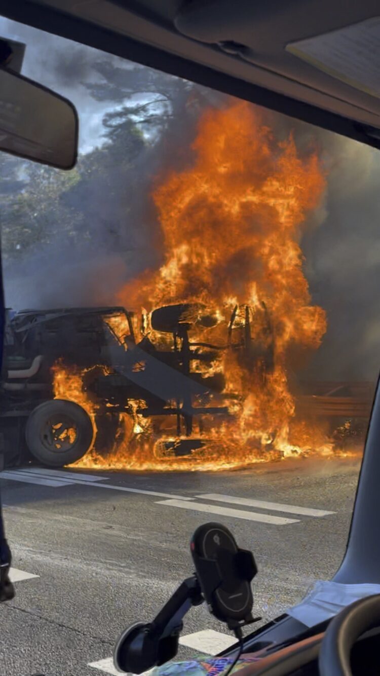 猫飼いの狩人 on X: "東関道 谷津船橋〜湾岸習志野間で事故大渋滞と思ったら燃えてるhttps:t.co A4yRQPM7nP"X。