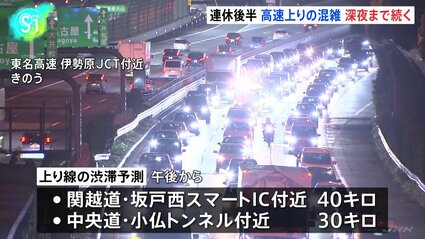 関東の高速道路 行楽帰りの車などで上りの混雑が深夜まで続く 中央道・小仏トンネル付近で16キロ 関越道・高坂SA付近で13キロTBS NEWSDIG。