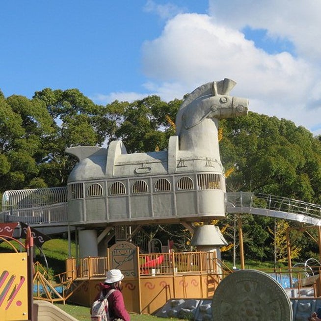 kouen_days_okayama ⇦他の投稿はコチラ峰山公園 はにわっ子広場今回は意外と近い! 高松市の公園のご紹介です♪古代文明?をモチーフにした広い公園! 駐車場から800mほど歩きますが、 たどり着いたそこには巨大なハニワたちが! 目でも楽しい公園にはたくさんの。