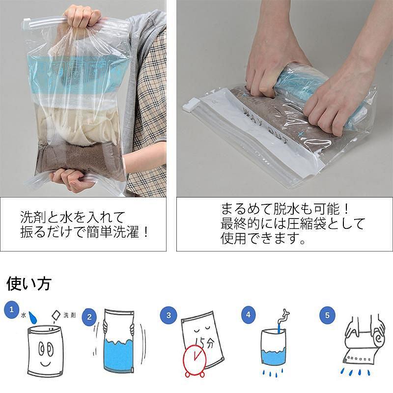 シャカシャカ ウォッシュバッグ 圧縮 袋 通販 圧縮袋 洗濯袋 小物 洗う 脱水 絞る 浸け置き 洗い 予洗い 防災 非常用 災害 洗濯物 衣類 服AWAT 靴下 出張 キャンプ アウトドア 旅行 トラベル。