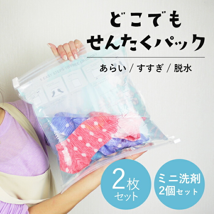 水・洗剤入れて振るだけ! どこでも洗濯パック2枚組 ミニ洗剤2個付 洗濯グッズ 便利グッズ 海外旅行 国内旅行 出張 洗濯袋 アウトドア 手洗いつけ置き洗い 旅行 洗濯 グッズ 日本製 -スリーピース ギフトモール店 - プレゼント&ギフトのギフトモール。