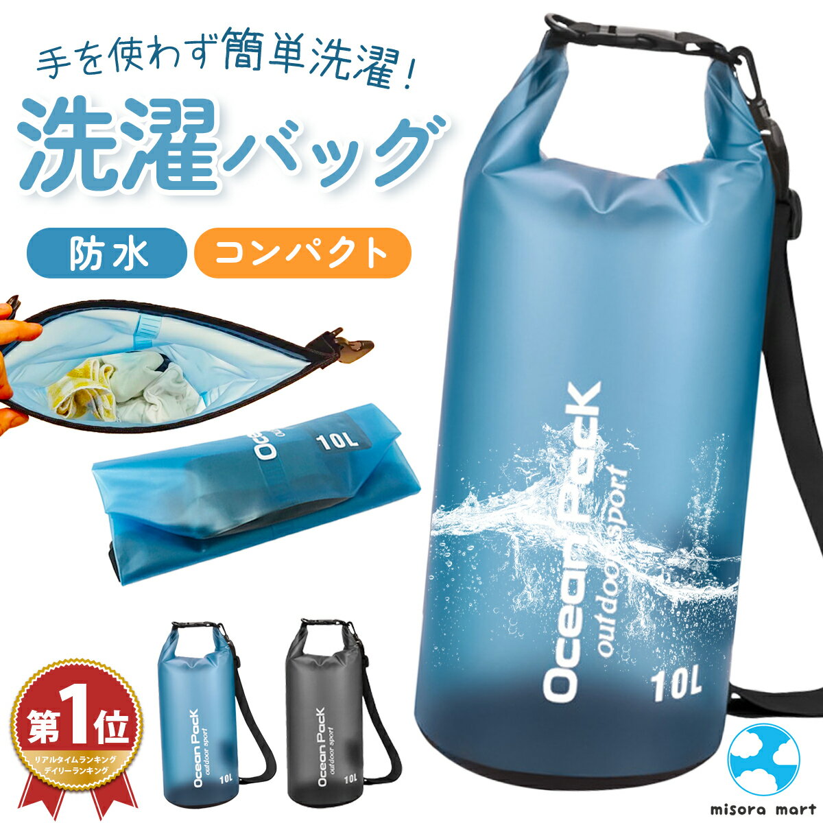 Amazon.co.jp: JoyWave 洗濯袋 洗濯バッグ ランドリーバッグ 旅行グッズ 便利グッズ 持ち運びトラベル用品 防災 アウトドアキャンプ 出張 ホテル水色 10L: ホーム&キッチン。