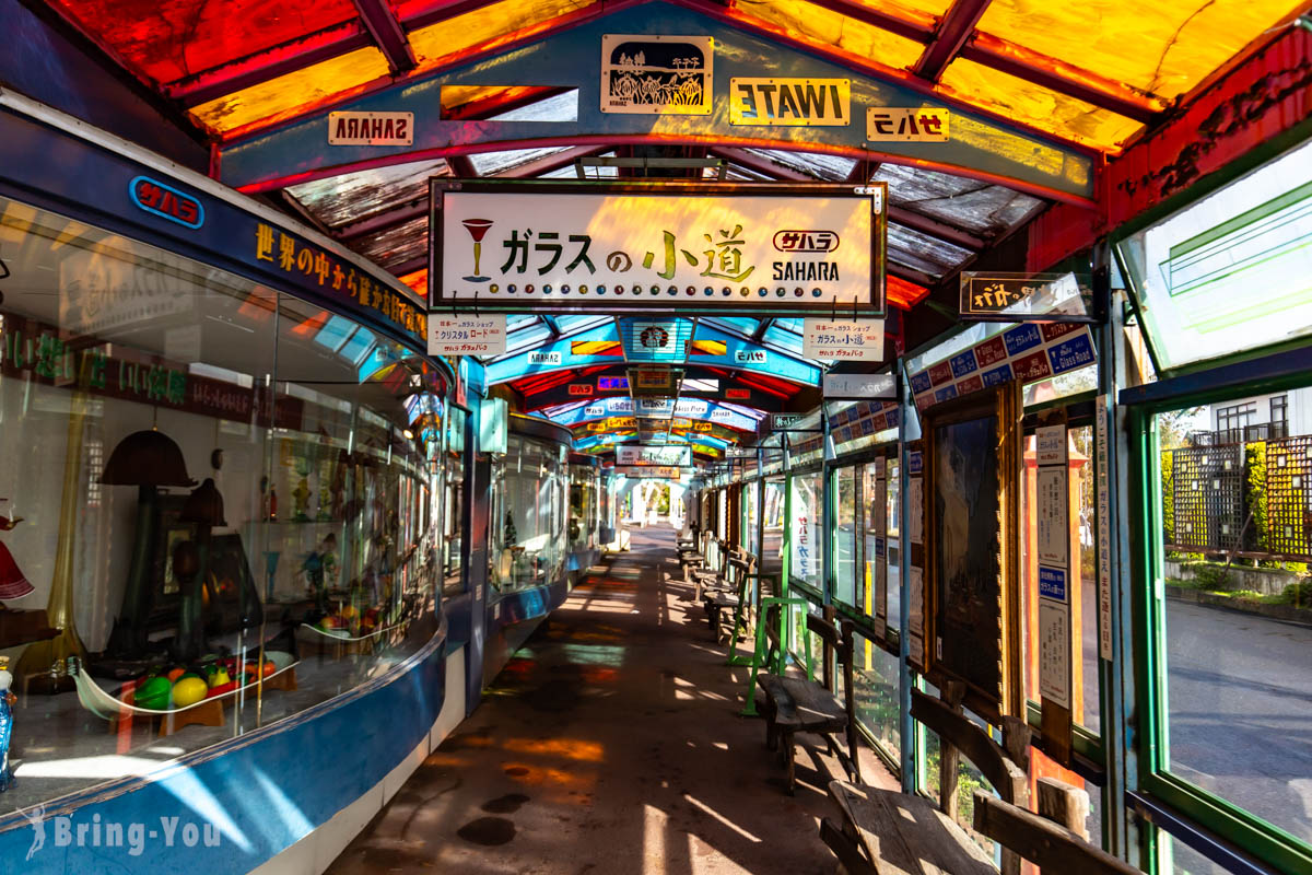 日本岩手縣一關市Sahara Glass Parkサハラガラスパーク 撒哈拉玻璃主題樂園 ,穿過昭和風格藝術廊道,走進嚴美溪旁的夢幻驛站。