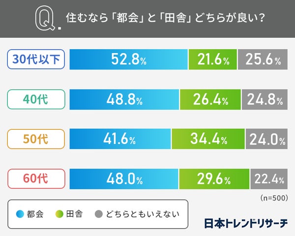 住むなら都会?田舎? 30代以下の52.8%が「都会が良い」 年代別での差は?株式会社NEXERのプレスリリース。