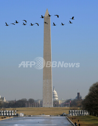 ワシントン記念塔と鳥の群れ、米国 写真2枚 国際ニュース:AFPBB News。