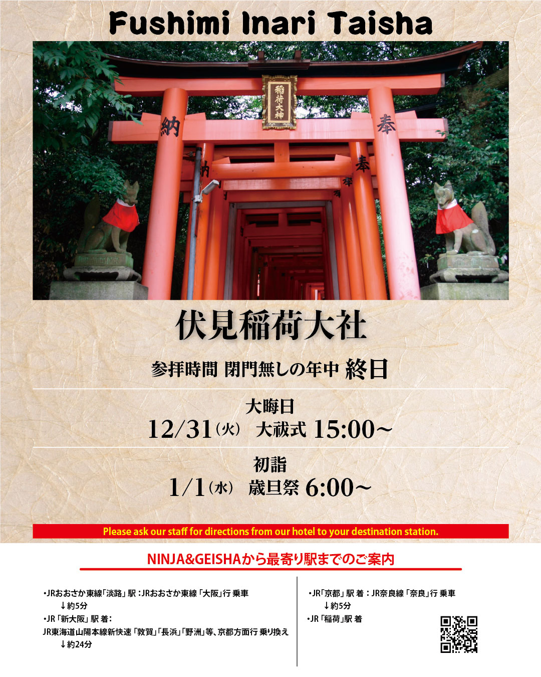 JR奈良線・稲荷駅改札を出たら目の前は伏見稲荷大社の表参道! 徒歩0分の好アクセスふしみいなりガイド。