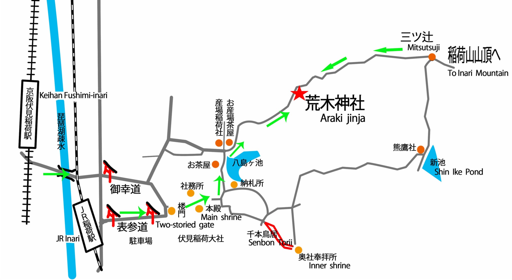伏見稲荷大社地図 "⌒∇⌒" 三ツ辻まで行きました。伏見稲荷大社千本鳥居 伏見稲荷大社 伏見稲荷 鳥居 京都 京。