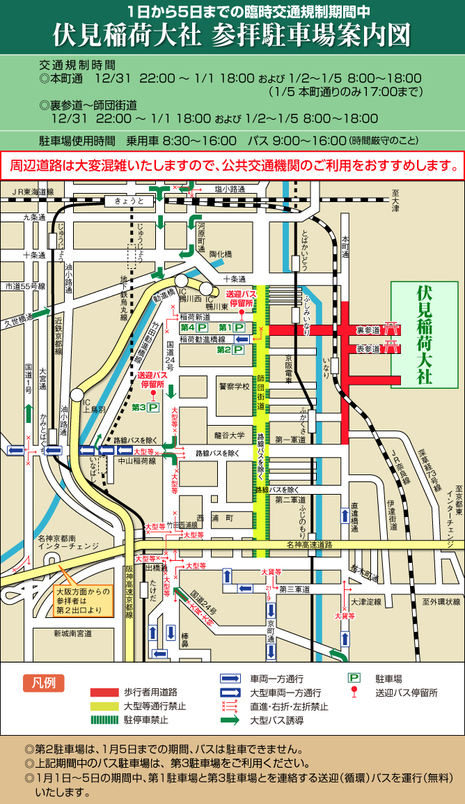 平成27年1月1日から5日までの臨時交通規制期間中交通アクセス伏見稲荷大社。