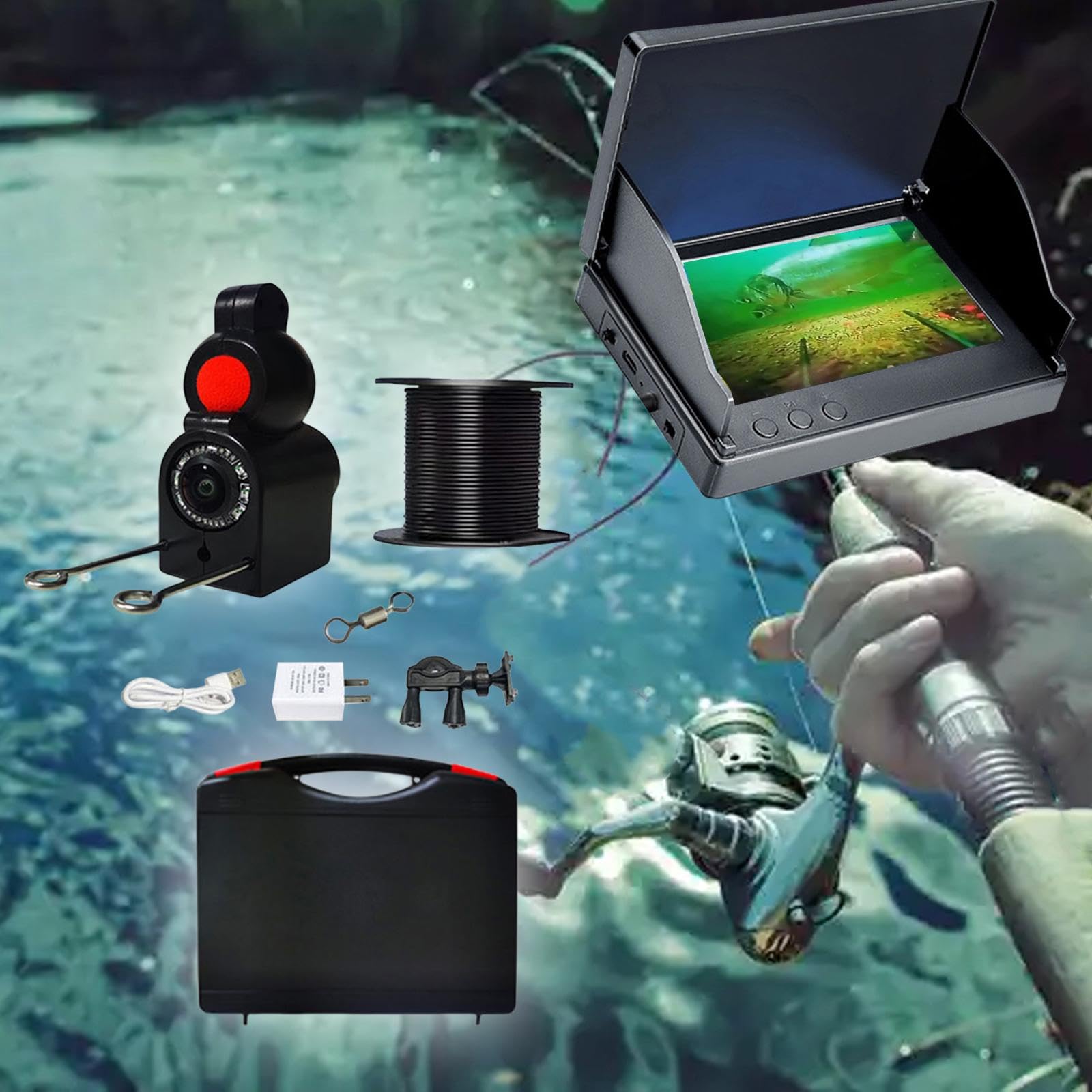 7" 水中釣りカメラ 1200TVL HD レンズ 釣りカメラ 15m ケーブル 湖、ボート、氷釣り用 12 IR ライト US プラグ - K&FConcept。