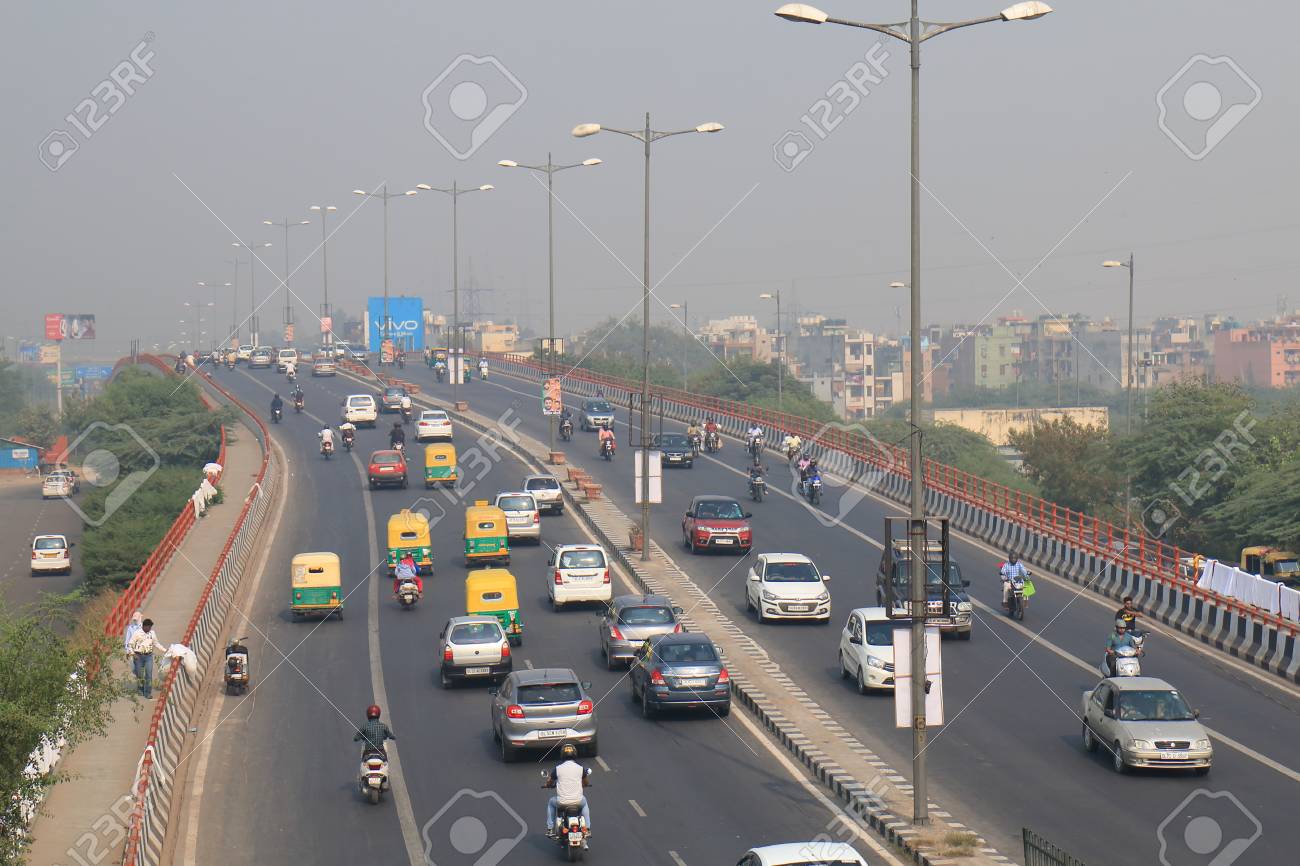 ニューデリーインド - 2017年10月28日:ニューデリーインドのニューデリー高速道路交通都市景観。の写真素材・画像素材 Image 93998243。