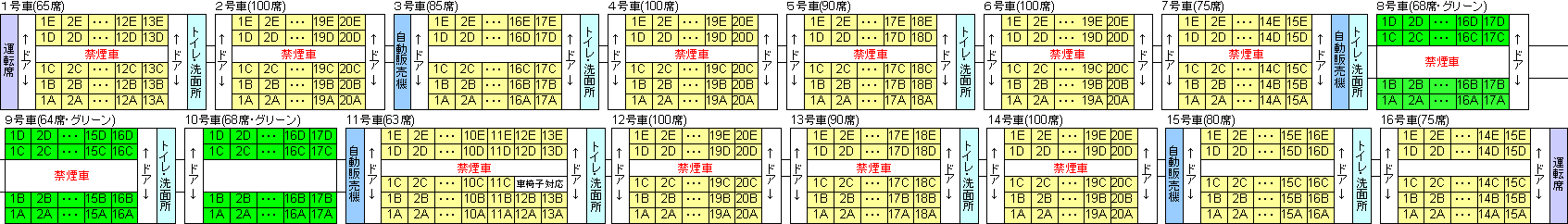 N700系の座席表 16両編成 「のぞみ」「ひかり」「こだま」東海道新幹線・山陽新幹線 N700S・N700A のぞみ新幹線ナビNEWS。