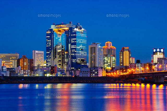 淀川と梅田のビル夜景 大阪府 01597013402 の写真・イラスト素材アマナイメージズ。