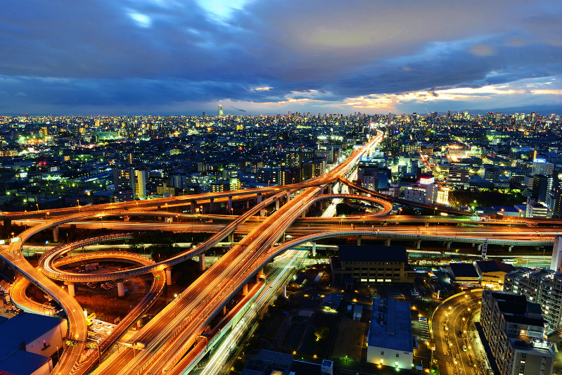 大阪夜景大阪駅前第3ビルと阿波座ジャンクションα6700・Ulanzi ZERO F38 カーボン三脚Photo JournalPRESS。