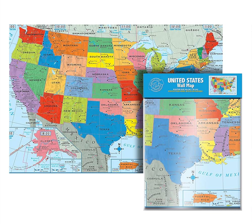 AmazonBazic-Maps 究極のジャンボ米国壁マップ米国マップポスター - 米国50州 40インチ x 28インチ すべての主要都市を含む地図文房具・オフィス用品。