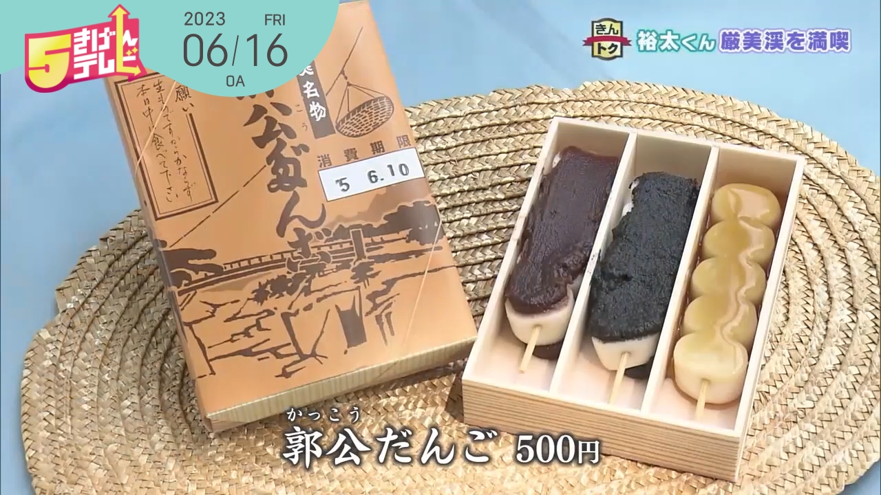 厳美渓の空飛ぶだんご「かっこうだんご」を紹介しています。