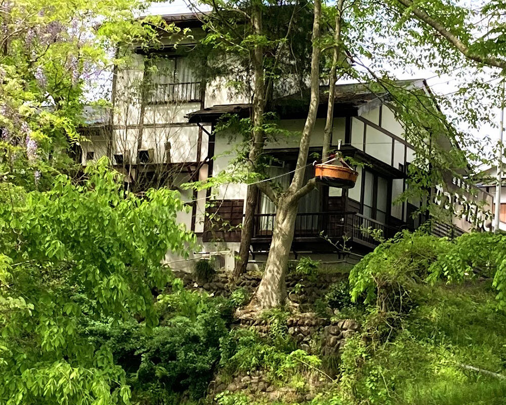 空飛ぶ団子 , 岩手県一関市にある『郭公だんご』🍡, 自然豊かな厳美渓のそばにあります, このお店はなんといっても『空飛ぶ団子』,川の向こう側にお店, その反対に東屋があって、カゴにお金を入れて木槌でカンカンと叩くと店員さんがカゴを引き上げてくれるユニークなお店✨,団子とお茶が到着🍵, 団子は3種類入っていて結構大きい❗️, 絶景を見ながら食べれて500円は安い❗️,。