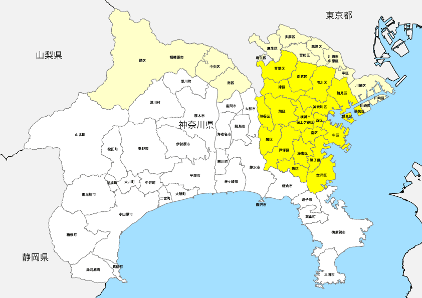 神奈川県と横浜市の地図イラスト素材イラスト無料・かわいいテンプレート。