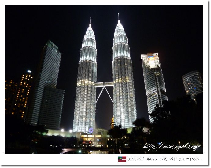 マレーシア・クアラルンプール 「ペトロナスツインタワー」の夜景撮影スポット 旅の撮影スポット旅と写真.com。