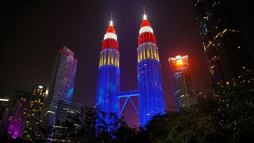 マレーシア観光ブログ : 3色のペトロナス・ツインタワ。