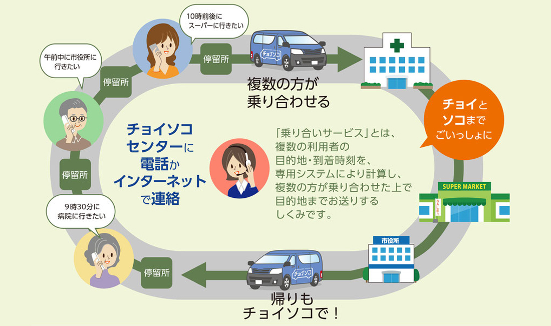 みんなで守り育てる乗り合い送迎サービス チョイソコまにわ。