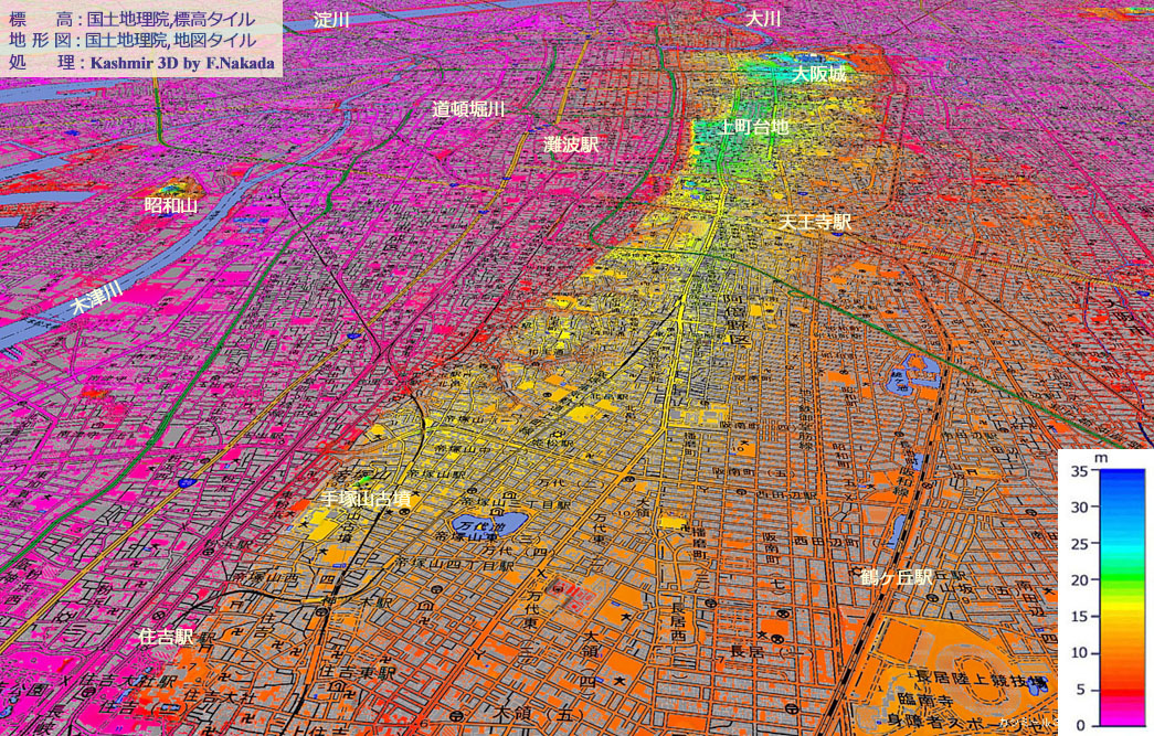 日本の地形千景 大阪府:大阪市上町台地の「おほの型集落」。