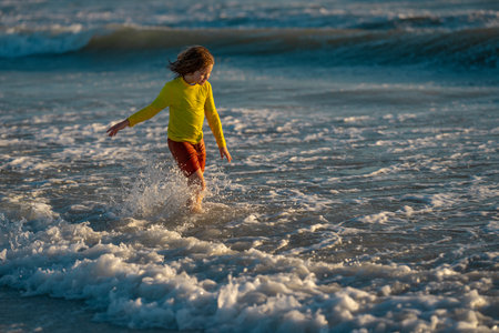 夏の海で水しぶきで遊ぶ幸せな子ども。夏休み。海で波の子供の遊び。海で遊んで水滴をはねかける小さな子供。子供は海で水しぶきを流します。夏休み。の写真素材・画像素材Image 207064258。