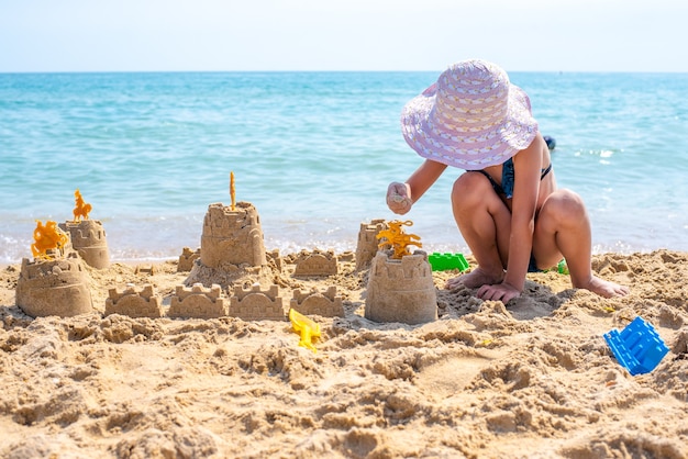 幸せな子供たちが海で遊ぶ 夏休みを楽しむ子供たちPremium写真。