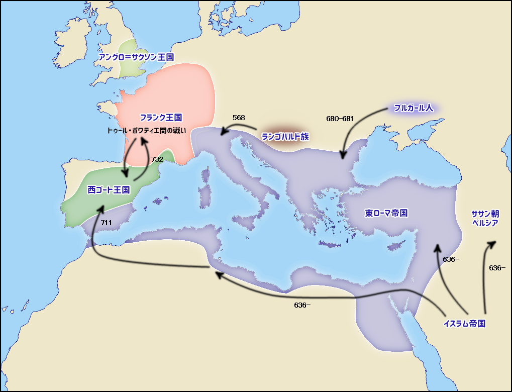 東ローマ帝国の縮小とイスラム帝国の強大化世界史・現代史まとめ。