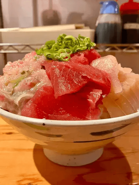 上野でおいしいゴハン: 朝どれ鮮魚 湯島 魚之屋の「ネギトロ丼と若鳥の唐揚げ御膳」 880円。