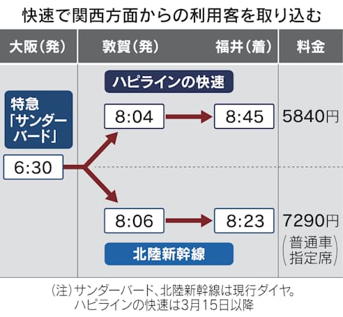 サンダーバードに快速接続 大阪→福井、9時前到着へ - 日本経済新聞。