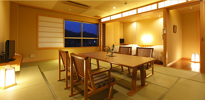 伊豆・稲取温泉旅館 食べるお宿浜の湯 公式HP 最低価格保証街側モダン和洋室。
