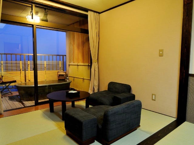 富士山絶景旅館 伊豆・三津浜 松濤館公式HP 最低価格保証半露天風呂付和洋室12畳「花・海」。