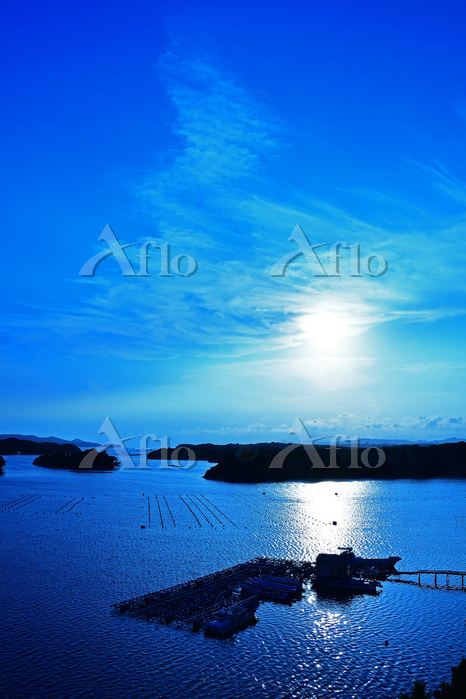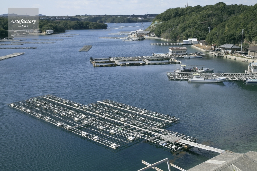 三重県 志摩市 英虞湾の真珠養殖筏231121770 の写真素材 - アフロ。
