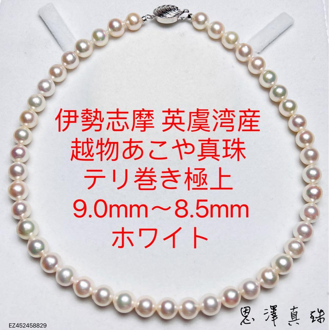 伊勢志摩 英虞湾産 越物あこや真珠 9.0mm〜8.5mmホワイト。