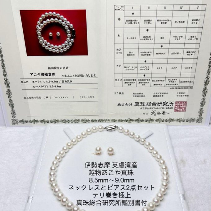 伊勢志摩英虞湾産 越物あこや真珠 8.5〜9.0mm 真珠総合。