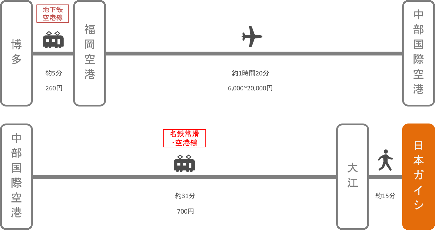 県営名古屋空港から日本ガイシホールへのアクセス方法。