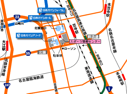 日本ガイシホールの最寄駅笠寺駅からの徒歩ルート 約5分- MDATA。