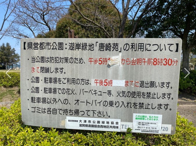 大津市 『都市公園唐崎苑湖岸緑地・唐崎神社』アウトドア情報 駐車場・トイレ 琵琶湖アウトドアマップ。