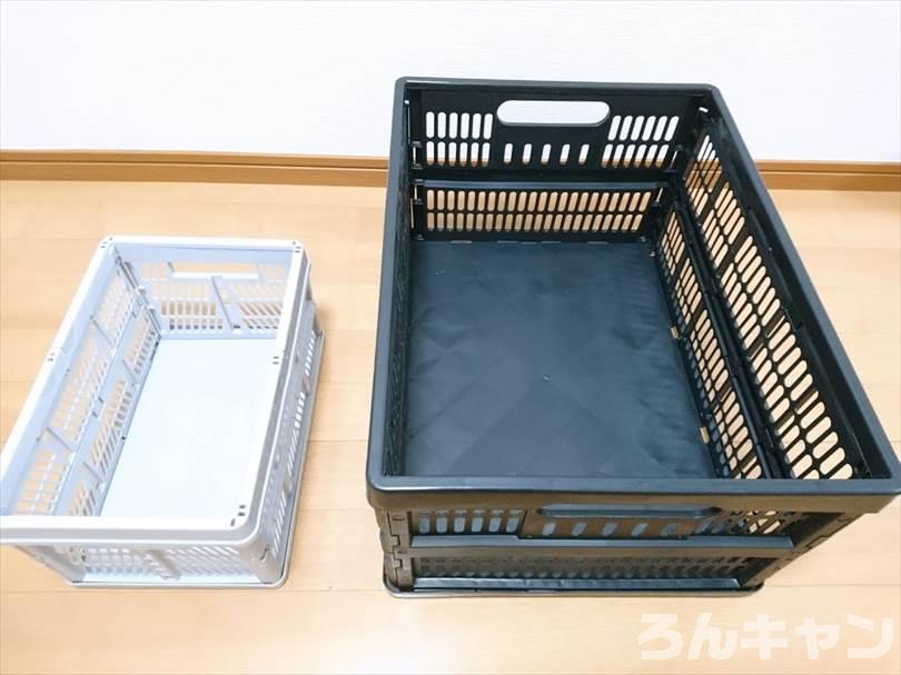 100均 ダイソーの折りたたみコンテナ 大小 キャンプ道具の収納に使える 2段OK– ろんキャン。